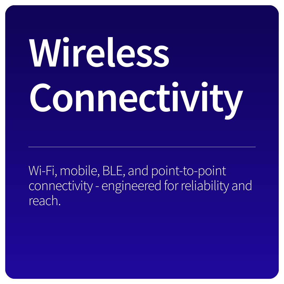 Wi-Fi, mobile, BLE, and point-to-point connectivity - engineered for reliability and reach.
