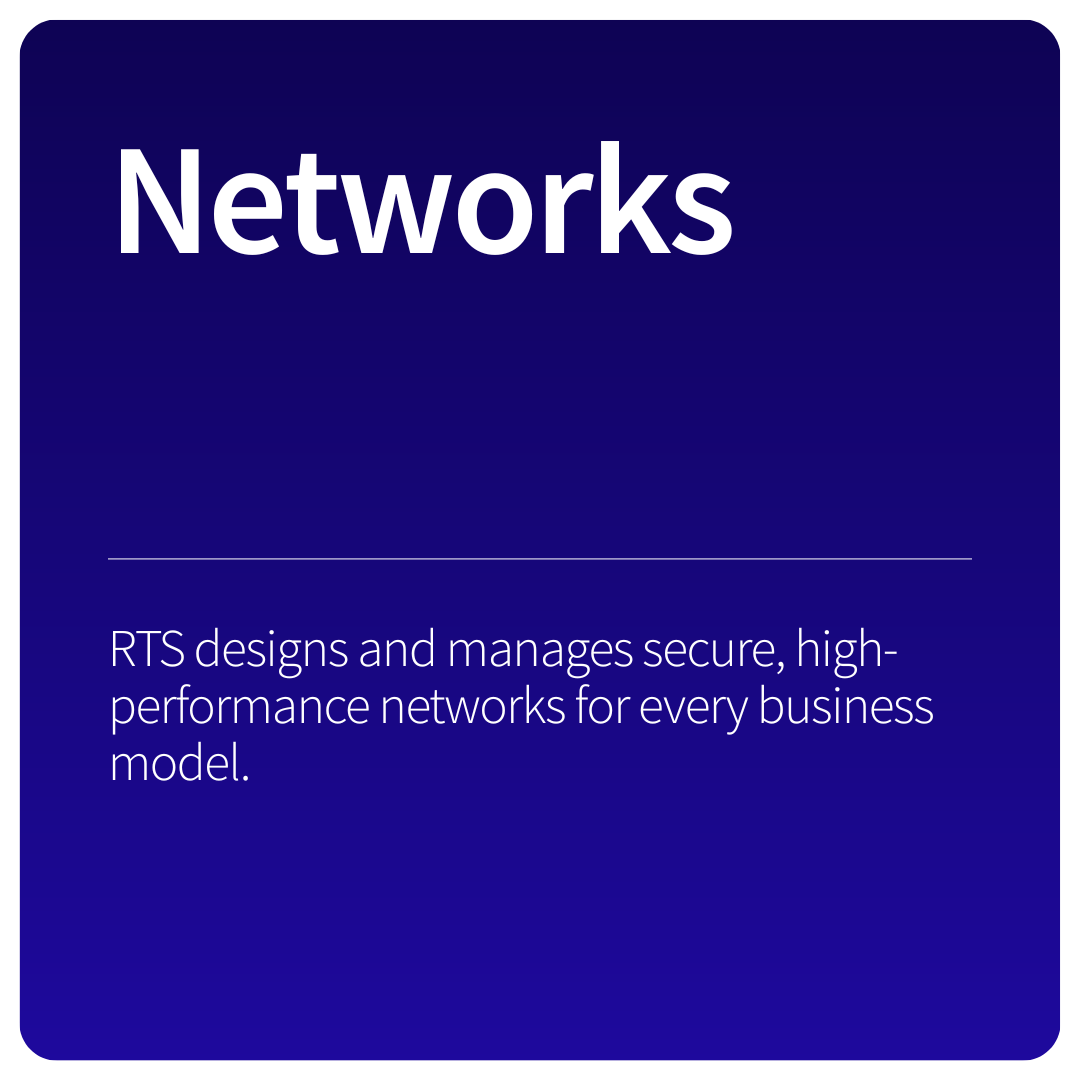 From traditional MPLS to next-generation SD-WAN, RTS builds network solutions that connect teams, sites and systems with maximum performance and security. We combine resilience with flexibility, enabling your business to work anywhere, without compromise.