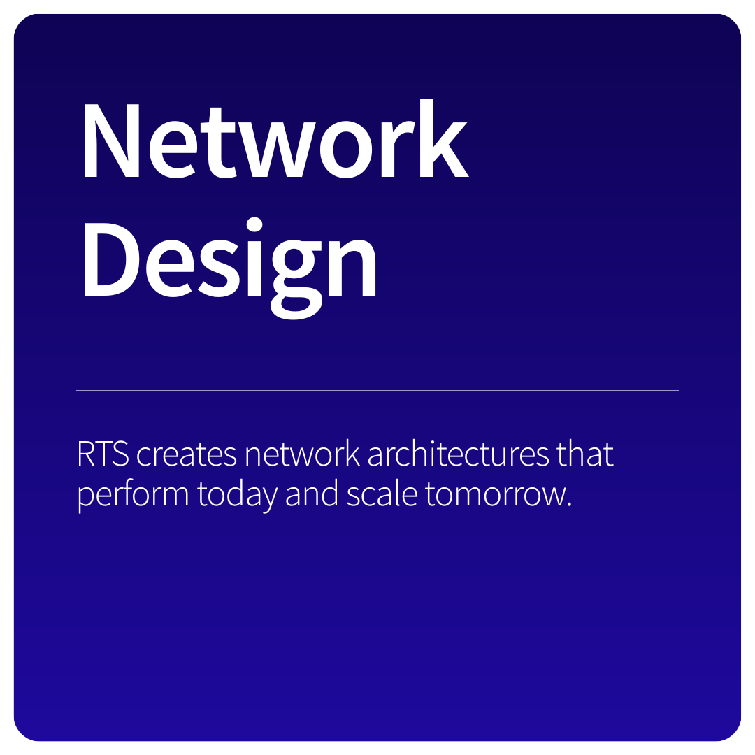 Our experts work with you to design a network that meets your business goals. From infrastructure planning to performance optimisation, every RTS network design combines reliability, security, and room to grow.